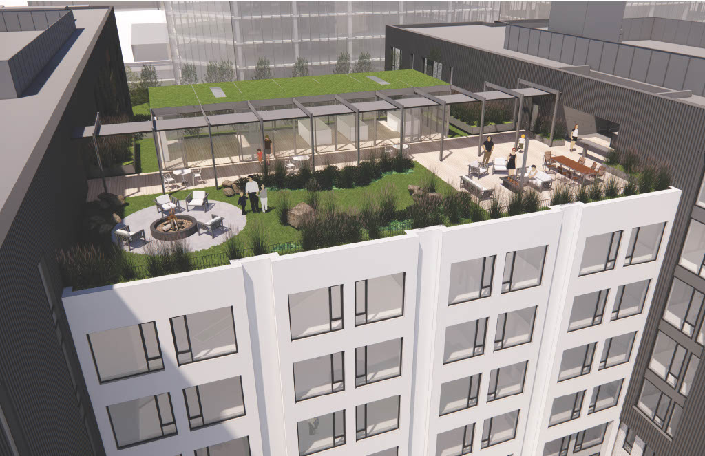 - Rooftop, lounges, fitness, bike storage, outdoor spaces